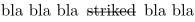 bla bla bla \inframed[frame=off]{\overstrike{striked}} bla bla