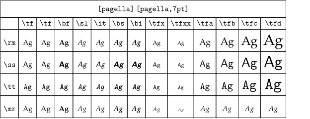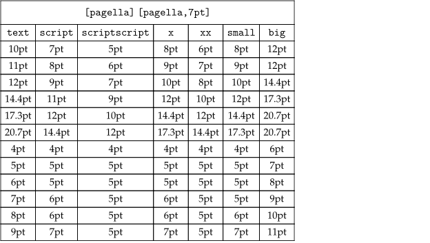 \showbodyfontenvironment[pagella,7pt]