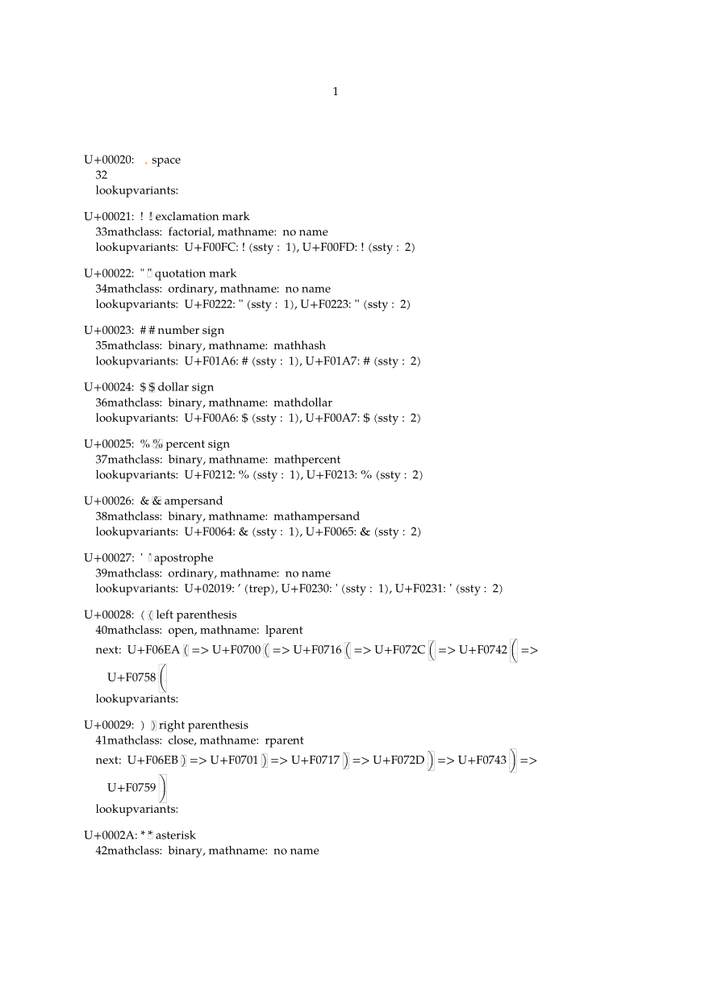 \usemodule[math-characters] \setupcolors[state=start] \setupbodyfont[pagella,7pt] \starttext \showmathfontcharacters \stoptext