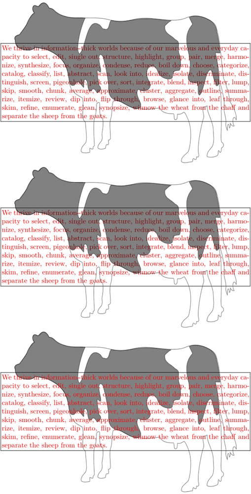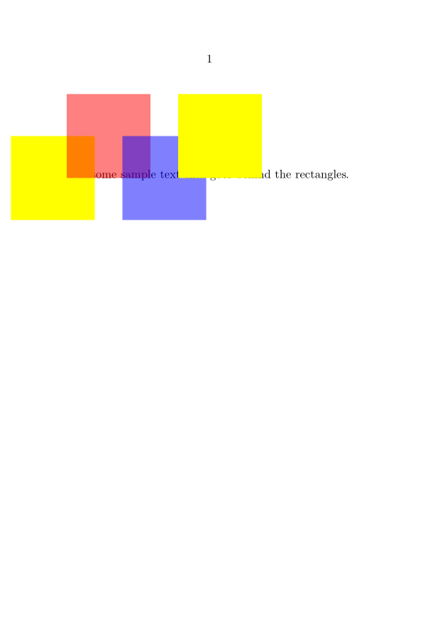 In the following example by Hans Hagen the yellow blocks have been added to demonstrate the order in which the blocks are drawn on the page; the first yellow block is behind the transparent red and blue blocks, while the second is in front of them.