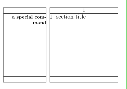 \setuppapersize[A8,landscape][A8,landscape] \setuplayout[leftmargin=2.5cm, leftmargindistance=0.2cm, backspace=2.9cm, width=4cm, rightmargin=0cm] \showframe \starttext \margintitle{a special command} \section{section title} \stoptext