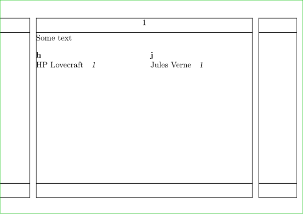 \setuppapersize[A7,landscape] \showframe \defineregister [author] \starttext Some text \author{Jules Verne} \author{HP Lovecraft} \blank \placeauthor % or \placeregister[author] \stoptext