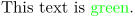 This text is \color[green]{green}.