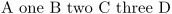 A \ctxlua{commands.doif(true)}{one} B \cldcommand{doif("a","a","two")} C \ctxcommand{doif(true)}{three} D