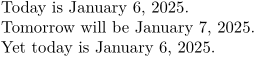 Today is \currentdate. \start\increment\normalday Tomorrow will be \currentdate. \stop Yet today is \currentdate.