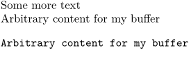 \definebuffer[mybuffer] \startmybuffer Arbitrary content for my buffer \stopmybuffer Some more text \getmybuffer \typemybuffer