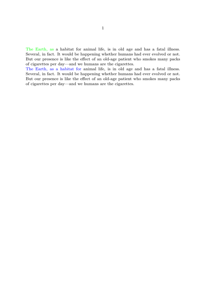 \definefirstline [threegreenwords] [ alternative=word, color=green, n=3, ] \definefirstline [sixbluewords] [ alternative=word, color=blue, n=6, ] \starttext \setfirstline[threegreenwords] \input ward \par \setfirstline[sixbluewords] \input ward \par \stoptext
