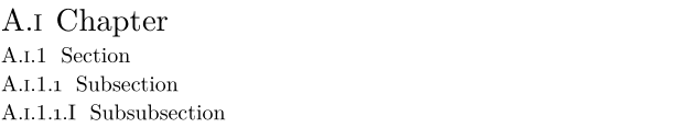 % mode=mkiv \setuppapersize[A5] \definestructureconversionset[myconversion] [A, % part: capital letters KR, % chapter: small caps Roman , % section: none defined (use fallback) m, % subsection: medieaval, a.k.a. oldstyle R] % subsubsection: capital Roman [r] \setupheads [part,chapter,section,subsection,subsubsection] [before={}, after={}, sectionconversionset=myconversion] \part{Part} \chapter{Chapter} \section{Section} \subsection{Subsection} \subsubsection{Subsubsection}