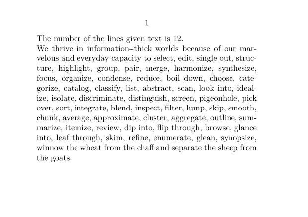 \setuppapersize[A7,landscape] \startbuffer \input tufte \stopbuffer \starttext \determinenoflines{\getbuffer} The number of the lines given text is $\the\noflines$. \getbuffer \stoptext