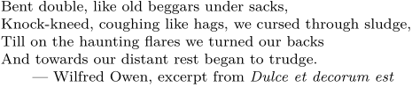 \setuppapersize[A6] \define\thisisthestart% {\grabbufferdata[mybuffer][thisisthestart][thisistheend]} % If you want to perform some action when the buffer ends % \let\thisistheend{...} \thisisthestart Bent double, like old beggars under sacks, Knock-kneed, coughing like hags, we cursed through sludge, Till on the haunting flares we turned our backs And towards our distant rest began to trudge. \rightaligned{--- Wilfred Owen, excerpt from {\it Dulce et decorum est}} \thisistheend \obeylines \getbuffer[mybuffer]