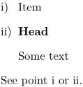 \startitemize[i][stopper=),headstyle=bold] \item[TheItem] Item \starthead[TheHead]{Head} Some text \stophead \stopitemize See point \in[TheItem] or \in[TheHead].