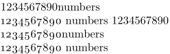 \numbers{1234567890 numbers}\crlf \mediaeval{1234567890 numbers} 1234567890 \crlf \oldstylenumerals{1234567890 numbers} \crlf {\os 1234567890 numbers}