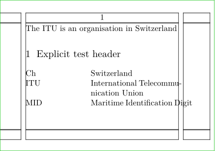 \setuppapersize[A8,landscape] \showframe \definesynonyms[test][tests][\infull] \test{ITU}{International Telecommunication Union} \test{MID}{Maritime Identification Digit} \test{Ch}{Switzerland} \starttext The \ITU\ is an organisation in \infull{Ch} \section{Explicit test header} \placelistofsynonyms[test][criterium=all] \stoptext