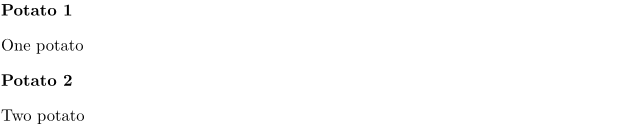 \defineenumeration[Potato] \Potato One potato \setupenumerations[Potato][location=left] % In mkiv one would use `alternative=left`. \Potato Two potato