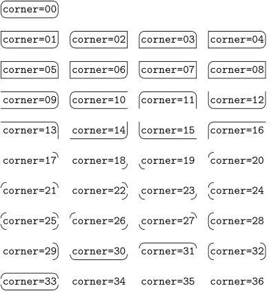 | This option determines whether or not the corners of the frame and background are rounded. It also allows drawing only selected corners. See the example below. |