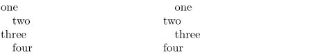 | [...,...,...] | odd even: indent odd/even lines in \obeylines scopes |