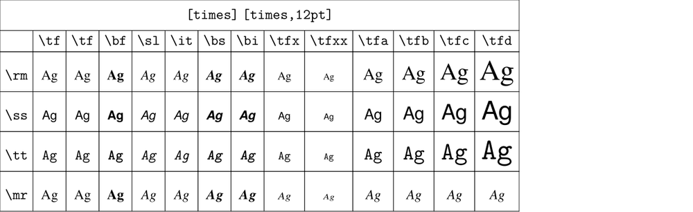 \showbodyfont[times,12pt]