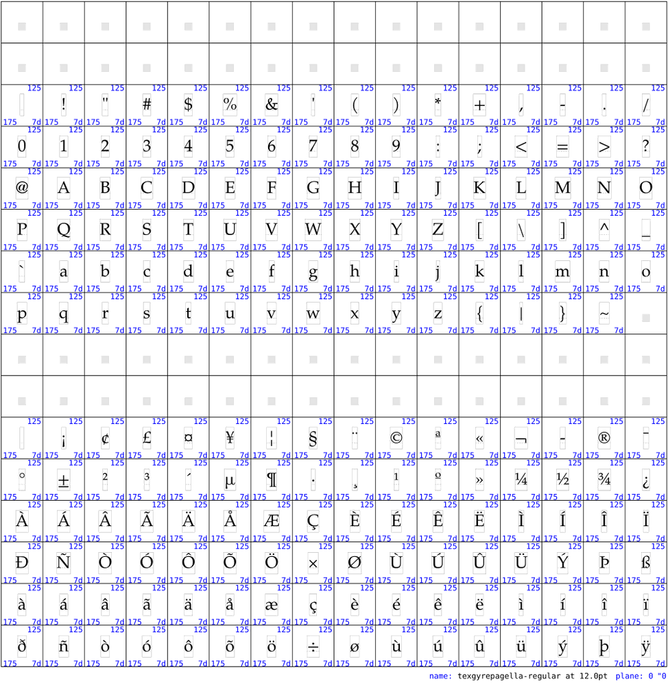 \setupbodyfont[pagella,12pt] \showfont