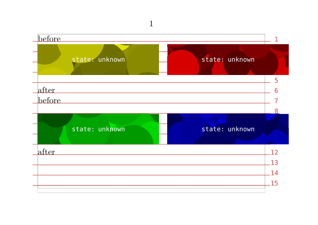 \setuppapersize[A7,landscape] \setuplayout[grid=yes] \useMPlibrary[dum] \showgrid \starttext before \startcombination [nx=2,ny=1,continue=yes] {\externalfigure[dummy][width=4cm,height=1cm]} {} {\externalfigure[dummy][width=4cm,height=1cm]} {} \stopcombination after before \startlinecorrection \startcombination [nx=2,ny=1,continue=yes] {\externalfigure[dummy][width=4cm,height=1cm]} {} {\externalfigure[dummy][width=4cm,height=1cm]} {} \stopcombination \stoplinecorrection after \stoptext