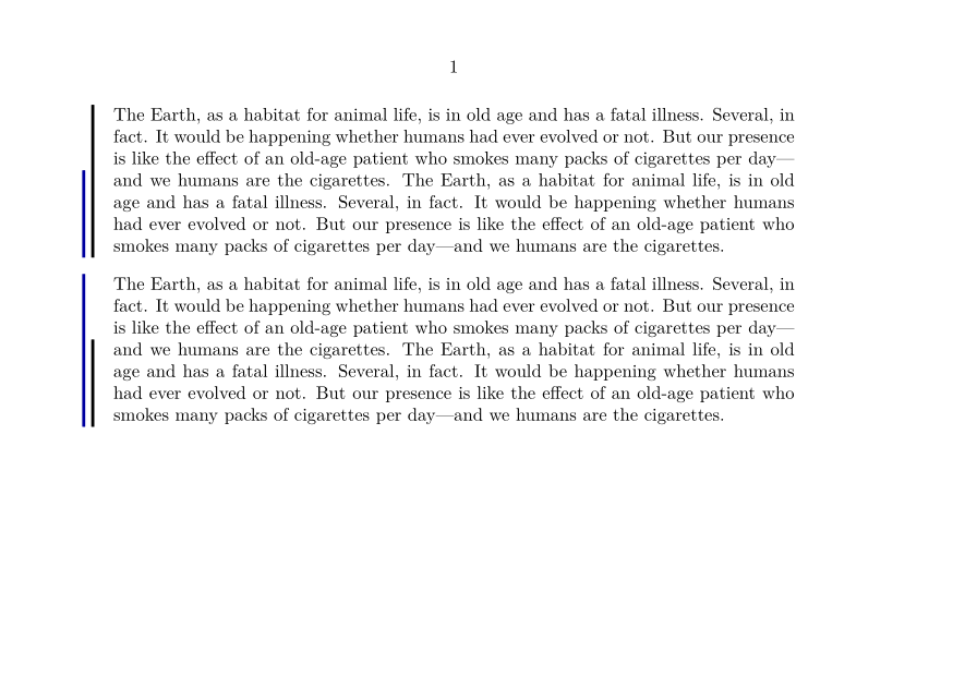 \setuppapersize[A6,landscape] \setupmarginrule[2][rulecolor=darkblue] \starttext \startmarginrule[1] \input ward \startmarginrule[2] \input ward \stopmarginrule \stopmarginrule \blank \startmarginrule[2] \input ward \startmarginrule[1] \input ward \stopmarginrule \stopmarginrule \stoptext
