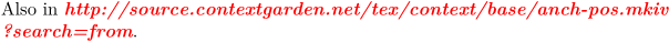 \setupinteraction[state=start] \useURL [seefrom] [http://source.contextgarden.net/tex/context/base/anch-pos.mkiv?search=from] [] [source:from] \setupurl[color=red,style=bolditalic] Also in \url[seefrom].