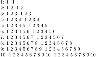 \dostepwiserecurse {1} {10} {2} {...} \dostepwiserecurse {10} {1} {-2} {...}