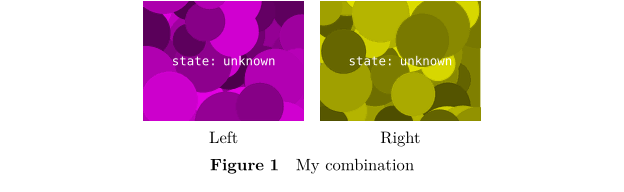 \useMPlibrary [dum] %% sample images \startplacefigure [title=My combination] \startcombination [nx=2, ny=1] \startcontent \externalfigure [dummy] \stopcontent \startcaption Left \stopcaption \startcontent \externalfigure [dummy] \stopcontent \startcaption Right \stopcaption \stopcombination \stopplacefigure