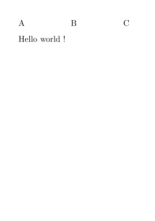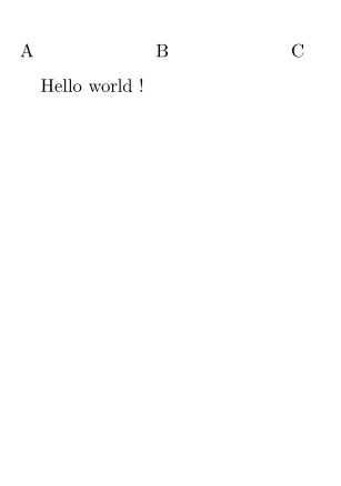 \setuppapersize[A8] \setuppagenumbering[alternative=doublesided] \setupheadertexts[B] \setupheadertexts[A][C] \starttext Hello world ! \stoptext