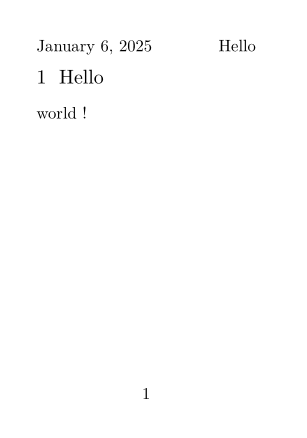 \setuppapersize[A8] \setupheadertexts [] % To make it empty \setupheadertexts [date] [section] \setupfootertexts [pagenumber] \starttext \startsection[title=Hello] world ! \stopsection \stoptext