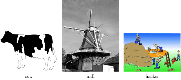 \startcombination[3*1] {\externalfigure[cow] [combination]}{cow} {\externalfigure[mill] [combination]}{mill} {\externalfigure[hacker][combination]}{hacker} \stopcombination