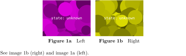 \useMPlibrary [dum] \startplacefigure [location=none] \startfloatcombination [nx=2] \startplacefigure [title=Left, reference=ref:left, group=one, groupsuffix=a] \externalfigure \stopplacefigure \startplacefigure [title=Right, reference=ref:right, group=one, groupsuffix=b] \externalfigure \stopplacefigure \stopfloatcombination \stopplacefigure See \in{image}[ref:right] (right) and \in{image}[ref:left] (left).