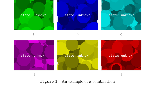 \useMPlibrary [dum] %% sample images \startplacefigure [title=An example of a combination] \startcombination [nx=3, ny=2] \startcontent \externalfigure [dummy] \stopcontent \startcaption a \stopcaption \startcontent \externalfigure [dummy] \stopcontent \startcaption b \stopcaption \startcontent \externalfigure [dummy] \stopcontent \startcaption c \stopcaption \startcontent \externalfigure [dummy] \stopcontent \startcaption d \stopcaption \startcontent \externalfigure [dummy] \stopcontent \startcaption e \stopcaption \startcontent \externalfigure [dummy] \stopcontent \startcaption f \stopcaption \stopcombination \stopplacefigure