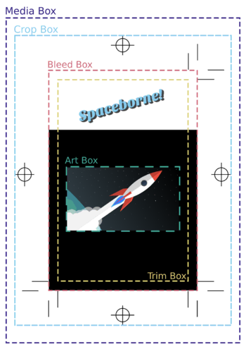 | MediaBox | Size of the physical medium (print sheet); this is the page format. |
