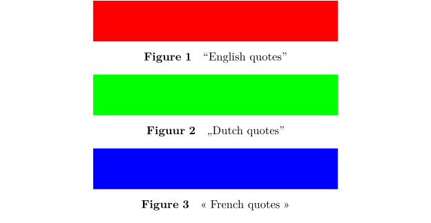 % Default is \mainlanguage[en] \startplacefigure[title=\quotation{English quotes}] \midaligned{\blackrule[width=6cm,height=1cm,color=red]} \stopplacefigure {\mainlanguage[nl] \startplacefigure[title=\quotation{Dutch quotes}] \midaligned{\blackrule[width=6cm,height=1cm,color=green]} \stopplacefigure} {\mainlanguage[fr] \startplacefigure[title=\quotation{French quotes}] \midaligned{\blackrule[width=6cm,height=1cm,color=blue]} \stopplacefigure}