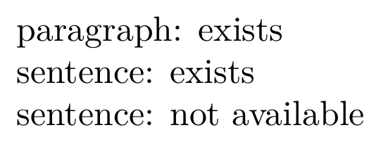 \startxmlsetups xml:text paragraph: \xmldoif{#1}{paragraph}{exists}\\ sentence: \xmldoifelse{#1}{paragraph/sentence}{exists}{not available}\\ sentence: \xmldoifnot{#1}{/sentence}{not available} \stopxmlsetups