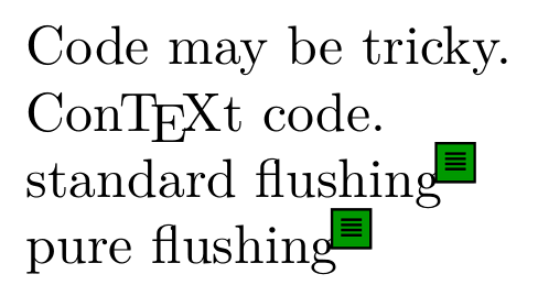 \startxmlsetups xml:code \xmlflushcontext{#1}\par standard flushing\comment{\xmlflush{#1}}\\ pure flushing\comment{\xmlpure{#1}} \stopxmlsetups