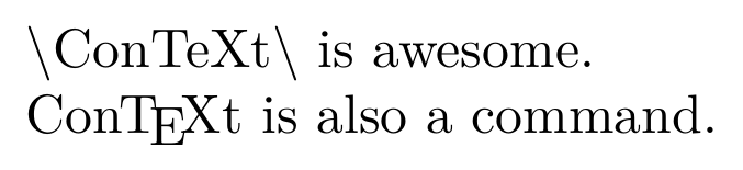<text> <paragraph>\ConTeXt\ is awesome.</paragraph> <paragraph class="second">\ConTeXt\ is also a command.</paragraph> </text>