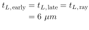 \usemodule[newmat] \startformula\eqalign{ t_{L,\text{early}} & = t_{L,\text{late}} = t_{L,\text{ray}} \cr & = 6\ \mu m \cr }\stopformula