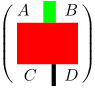 \definemathmatrix[mymatrix][matrix:parentheses][rulethickness=2pt] \starttext \startformula \startmymatrix \NC A \VL[3,green] B \NR \HL[10,red] \NC C \VL D \NR \stopmymatrix \stopformula
