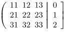 \definemathmatrix[pvmatrix] [left={\left(\thinspace}, right={\thinspace\right|}] \definemathmatrix[rpmatrix] [left={\left.\thinspace}, right={\thinspace\right]}] \startformula \startpvmatrix \NC 11 \NC 12 \NC 13 \NR \NC 21 \NC 22 \NC 23 \NR \NC 31 \NC 32 \NC 33 \NR \stoppvmatrix \startrpmatrix \NC 0 \NR \NC 1 \NR \NC 2 \NR \stoprpmatrix \stopformula