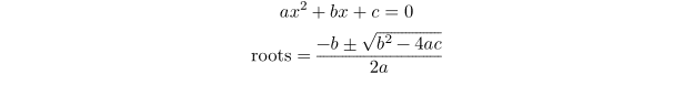\definemathalignment [gather] [n=1,align={1:middle}] \startformula \startgather \NC ax^2 + bx + c = 0 \NR \NC \text{roots} = \frac{ -b \pm \sqrt{b^2 - 4ac}}{2a} \NR \stopgather \stopformula