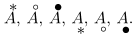 \framed[frame=off]{% $\mathover[symbol]{"2217}{A}$, % 2217 is unicode for asterisk $\mathover[symbol]{"2218}{A}$, % 2218 is unicode for circle $\mathover[symbol]{"2219}{A}$, % 2219 is unicode for bullet $\mathunder[symbol]{"2217}{A}$, $\mathunder[symbol]{"2218}{A}$, $\mathunder[symbol]{"2219}{A}$.}