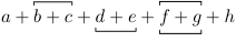 \startformula a + \overbracket{b + c} + \underbracket{d + e} + \doublebracket{f + g} + h \stopformula