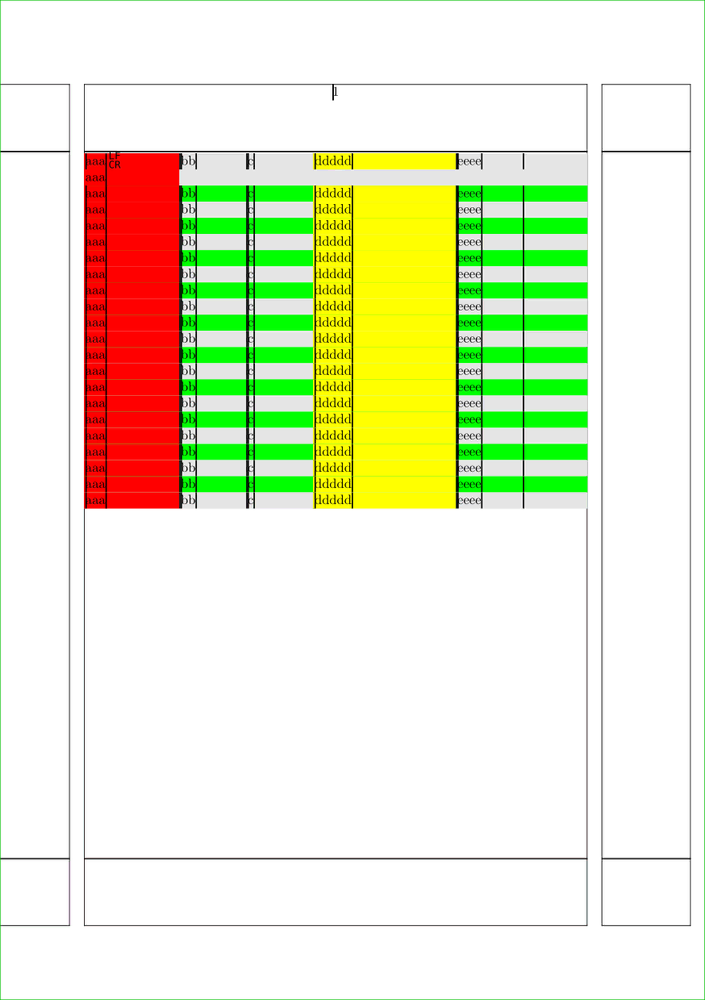 \setupcolors[state=start] \setuplinetable[n=6,m={2,2,2},regels=25] \startlinetable \NC aaa\crlf aaa \NC bb \NC c \NC ddddd \NC eeee \NC ff \NC \NR \dorecurse{10} {\NC aaa \NC bb \NC c \NC ddddd \NC eeee \NC ff \NC \NR} \stoplinetable \startlinetable \NC[style=slanted, color=green, background=color, backgroundcolor=darkred, nx=2, uitlijnen=middle] xxx \NC yy \NC ddddd \NC eeee \NC ff \NC \NR \dorecurse{10} {\NC aaa \NC bb \NC c \NC ddddd \NC eeee \NC ff \NC \NR} \stoplinetable