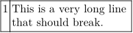 \setupTABLE[c][2][width=3cm] \bTABLE \bTR \bTD 1 \eTD \bTD This is a very long line that should break. \eTD \eTR \eTABLE