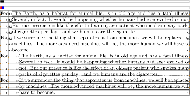 \showboxes \setuptabulate[unit=2mm] \blackrule[width=2mm]\par \blackrule[width=1mm,color=red]\blackrule[width=1mm,color=blue]\par \starttabulate[||p|] \NC Foo \NC \samplefile {ward} \NC \NR \NC Foo \NC \samplefile {jojomayer} \NC \NR \stoptabulate \starttabulate[|j0|i3p|] \NC Foo \NC \samplefile {ward} \NC \NR \NC Foo \NC \samplefile {jojomayer} \NC \NR \stoptabulate