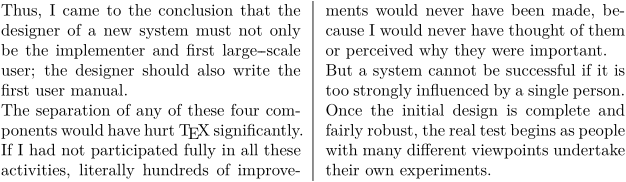 \setuppapersize[A5] \startcolumns[n=2,separator=rule] % [rule=on] seems to be deprecated \input knuth \stopcolumns