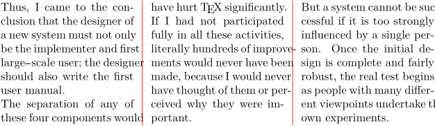\setuppapersize[A5] \startcolumns[n=3,separator=rule,rulecolor=red] \input knuth \stopcolumns
