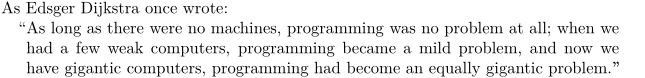 As Edsger Dijkstra once wrote: \startquotation \input dijkstra \stopquotation