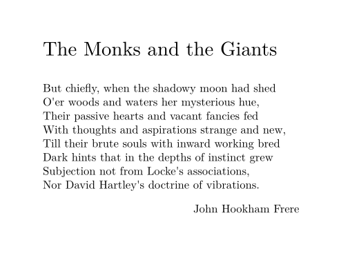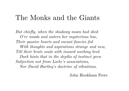 For example, to set an excerpt from The Monks and the Giants by John Hookham Frere: